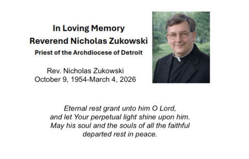 Reverend Nicholas Zukowski, of Warren, passed away peacefully on Wednesday, March 4, 2026, at the age of 71. Fr. Nick was born in Detroit, Michigan, on October 9, 1954, to Raymond and Rose Marie (née Hapke) Zukowski, and grew up on the east side of Detroit.